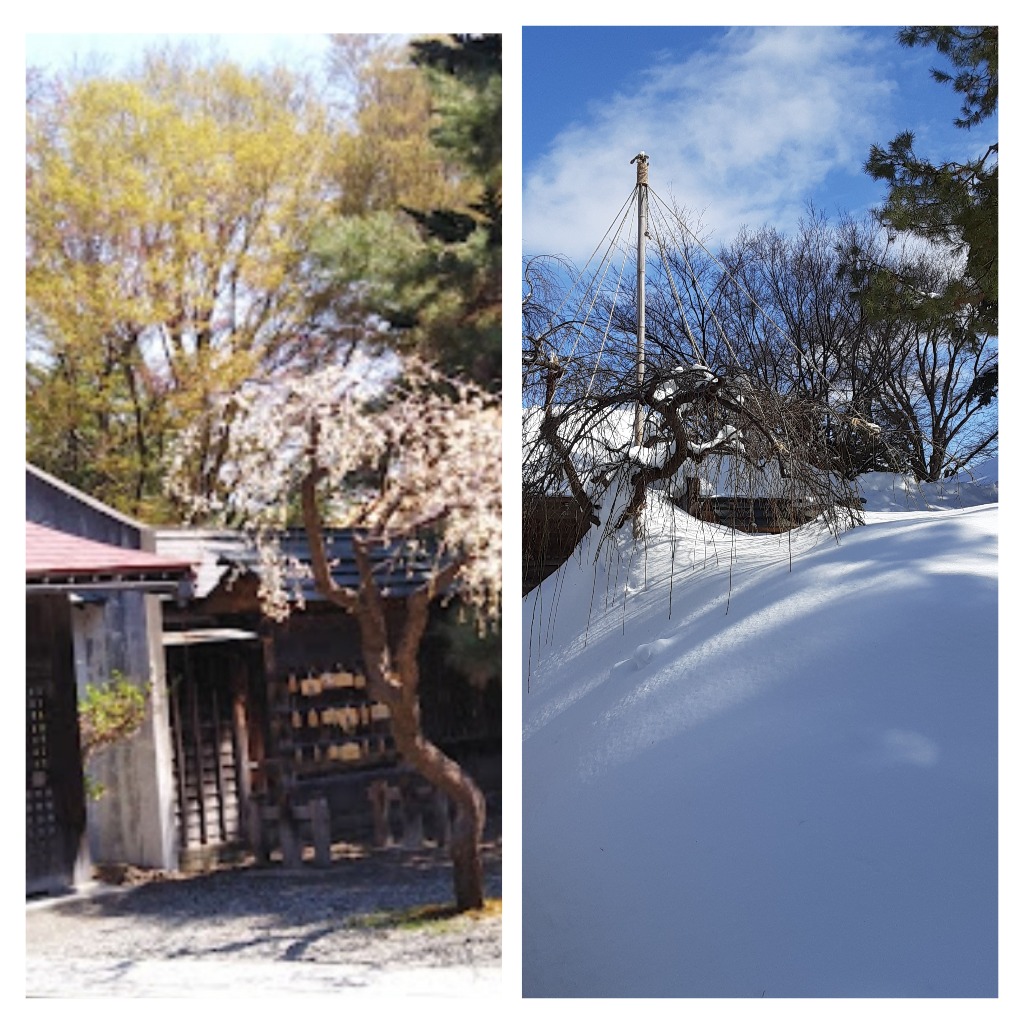 左はおととしの春に取ったもの。そして右は昨日の写真です。梅の木がすっかり雪に隠れています。